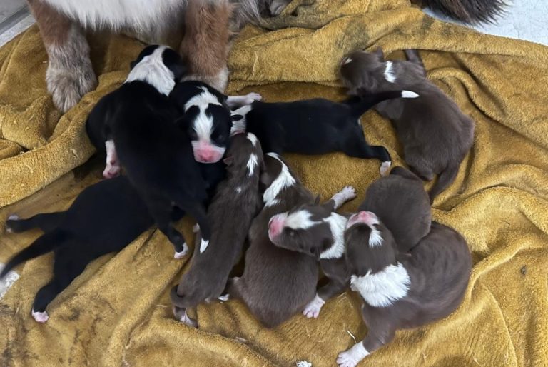 Après sevrage, votre chiot peut être récupéré à l’élevage. Paiement du restant.