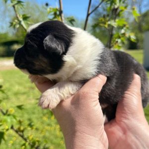 Nous vous annonçons la naissance des bébés bergers australiens issus du mariage entre Rosie (femelle noire tricolore à queue longue) et de Pharell (male bleu merle aux yeux bleus à queue ...