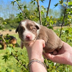 Toujours disponible sur cette portée,3 bergers australiens noirs tricolores, issus du mariage entre Sofia (femelle rouge tricolore) et de Pharell (mâle bleu merle). N’hésitez pas à nous ...